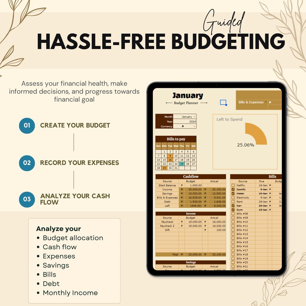 Begin your budgeting journey with our simplest Google Sheets monthly budget planner! This single-tab budget is perfect for beginners and individuals seeking control over their finances. Initiate budgeting in just three easy steps – it has never been this straightforward! Budget per paycheck, monthly, weekly, or biweekly, this spreadsheet is versatile enough to accommodate all your budgeting needs. This will give you financial awareness, control expenses, promote savings growth, and improve decision-making for long-term financial success.