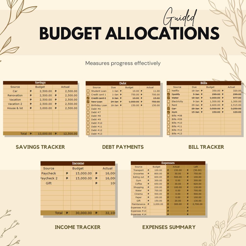 - Budget allocation sections