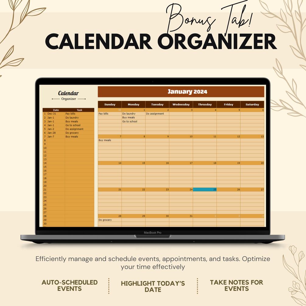 - Bonus tab: Calendar organizer